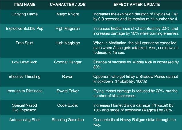 For the sake of fairness and to ensure your excellent experience in the land of Elrios, a sense of balance must be maintained among the skill grades of all playable characters. A rebalancing between certain character job pairs is now in effect.
